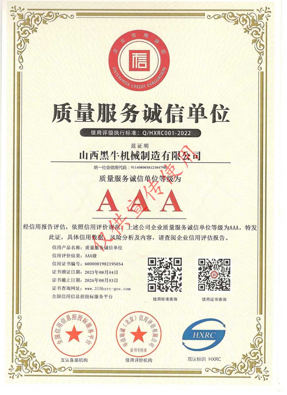 資質(zhì)證書 >AAA認(rèn)證>質(zhì)量服務(wù)誠(chéng)信單位
