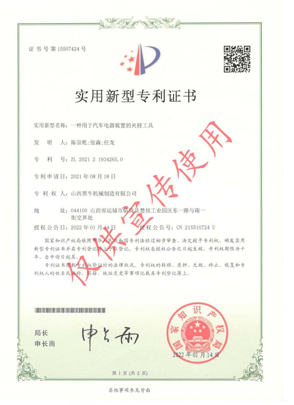 資質(zhì)證書 >實用型專利證書>實用型專利證書