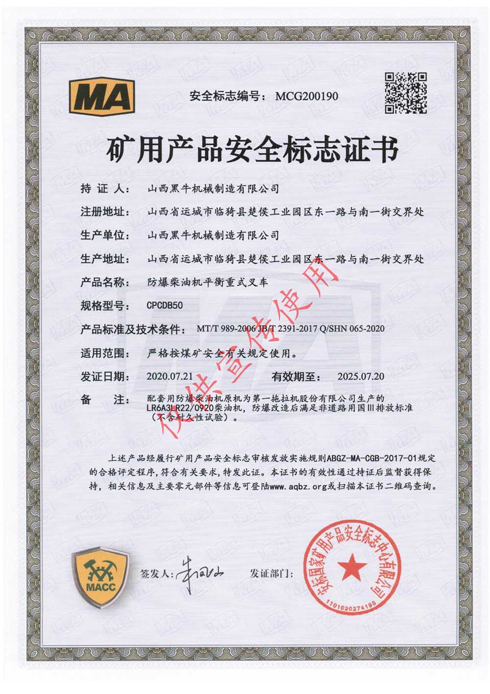 資質(zhì)證書 >車輛礦用產(chǎn)品安全標(biāo)志證書>CPCDB50