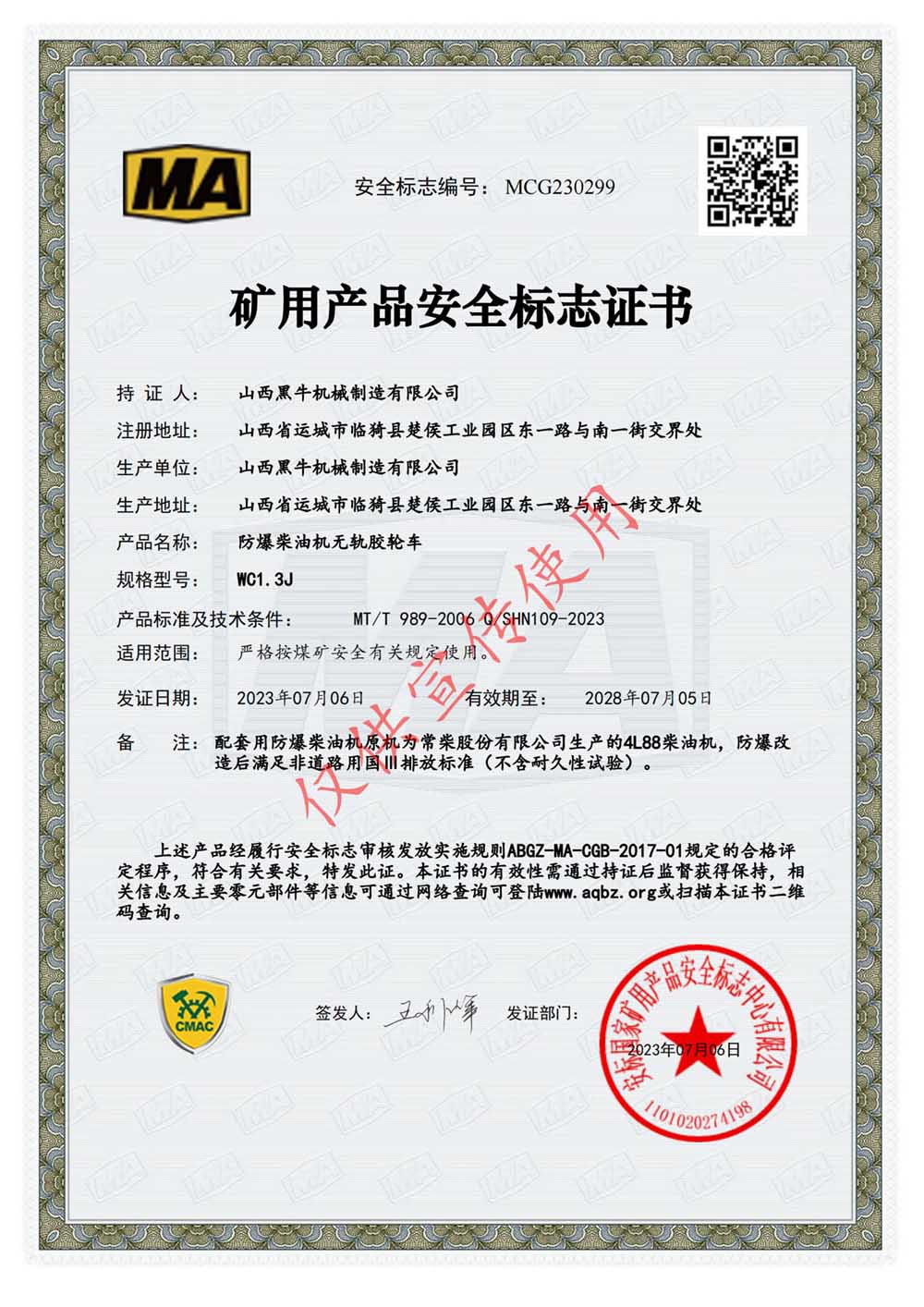 WC1.3J安標(biāo)證