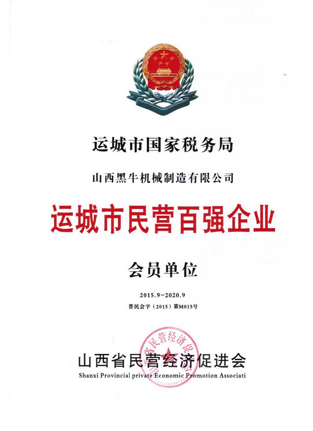 資質(zhì)證書 >企業(yè)榮譽(yù)>運(yùn)城市民營(yíng)百?gòu)?qiáng)企業(yè)